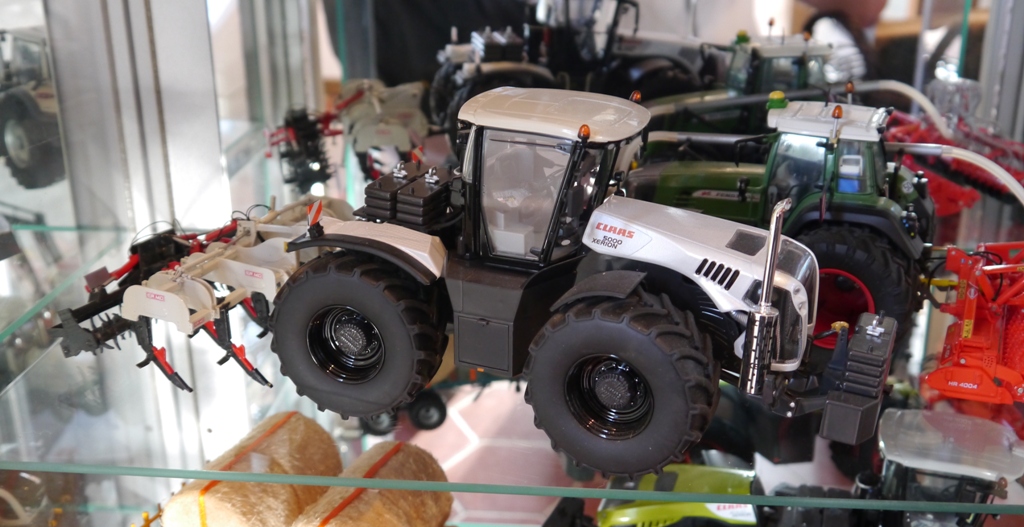 Claas Xerion 5000 Trac VC von Wiking in perl weiß umlackiert Peter Hardy mit ER.MO RIP.9 HI von Felimodels und Claas Ballast Gewichten von Wiking