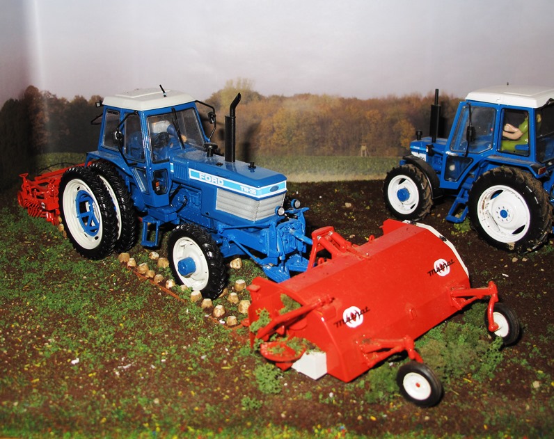 Von der Rübensaat zur Rübenernte: Hier ein recht schnell und noch nicht ganz vollständig umgebautetes Rübenernte-Diorama mit Ford-Traktoren. Ich hoffe, dass irgendwann noch ein passender Rüben-Überlader oder Rüben-Sammelbunker herauskommt. Bis dahin muss man sich die mechanisierte Rübenverladung auf den gezeigten Kipper an anderer Stelle vorstellen. Die beiden "Knechte" helfen nur dabei, einige verloren Zuckerrüben sauber auf das Schwad zu legen ...