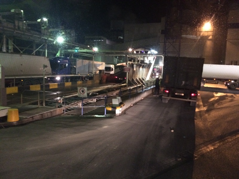 Das waren aber immer nur ca. 5 Minuten und dann waren die Mulden voll und es ging weiter, zumindest wenn man nur einen LKW vor sich hatte.Nachts kam es auch schonmal zum Stau auf der Anlage wenn zwei der fünf Annahmestellen schon geschlossen waren.