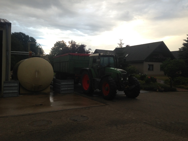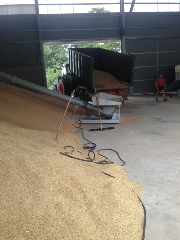 Seine Siloanlage war zu dem zeitpunkt schon brechend voll, so das in seine neue Lagerhalle gekippt werden musste.25.08.2013