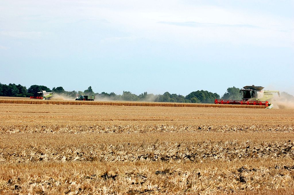 Das ist hier auch so. Gestern hat mir ein Fahrer erzählt, dass das LU vier Drescher mit Raupenlaufwerk aus dem Rheinland gemietet hat, da die Raddrescher nicht auf die Flächen können. Ich habe auch nur zwei Drescher auf Rädern gesehen, ein ganz kleiner und ein Lexion 440. Ein Lexion 670 TT im Lagergetreide hatte ale 20m feuchte Erde im Schneidwerk und musste zum saubermachen anhalten. Die breiten Schneidwerke sind aktuell nicht unbedingt von Vorteil.