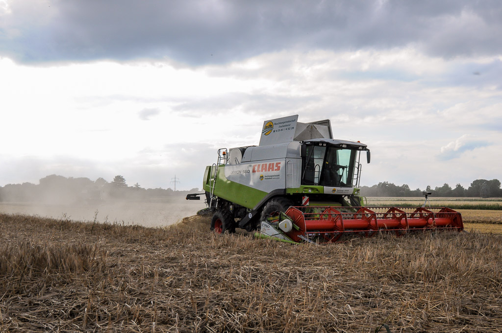 Von links nach rechts sind zu sehen: 2x John Deere S690i, Claas Lexion 460 Evolution, Claas 108 Dominator und CaseIH 9230 Vorführer für den Dominator. Ich war aber noch in den alten Bundesländern!