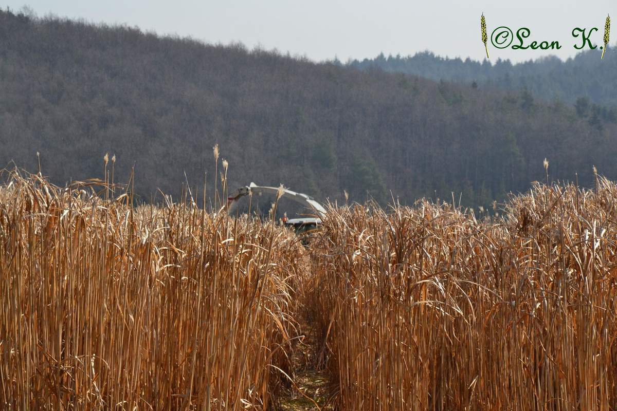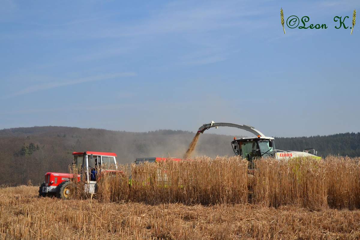 Am Samstag wurde bei uns in strahlendem Sonnenschein Miscantus gehächselt.