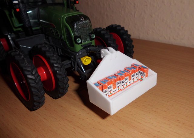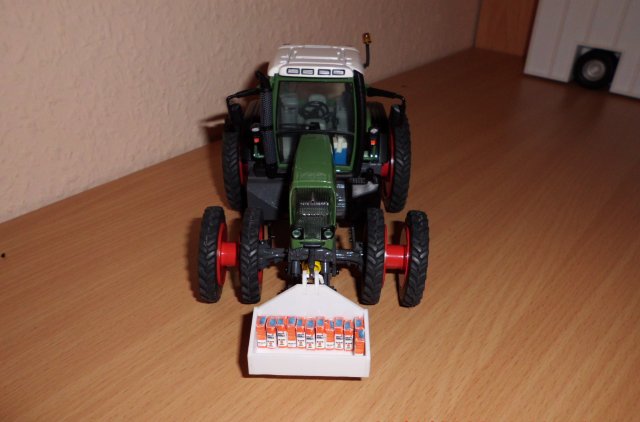 Ich habe mal meinen Fendt ein paar Details verspasst. Das ist ein Mal eine Kühltasche und eine Werzugkiste. Dann habe ich noch eine Frontkiste angebaut die ist zum Sagut trasportieren da. Die Rüben Einheiten haben auch schon mal platz genommen.