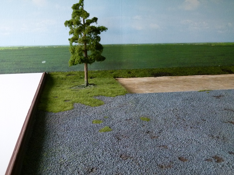 Absperrbahn (mein Straßenbelag) mit nem Cuttermesser bearbeitet, dann Sand, dann Farbe, alles noch ein bischen verklebt - FERTIG -