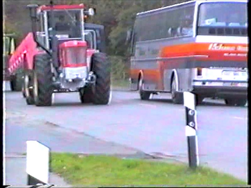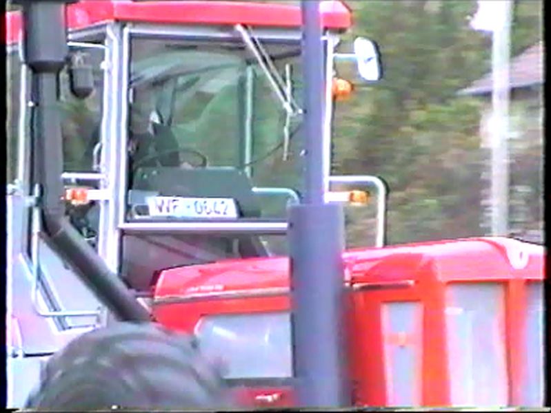 Heute mal wie versprochen einige Screenshots vom ersten Feldeinsatz, meiner damals frisch gegründeten Freizeit GbR im Herbst 1990. Die Qualität ist mäßig aber he......., es ist der letzte gebaute Profi Trac bei seiner ersten Fahrt auf öffentlichen Straßen. Für Detailfetischisten, die rote Nummer war WF-0642!!! Wie schon mal geschrieben waren es drei Landwirte aus dem Raum Königslutter, die dort jeweils Betriebsgrößen zwischen 80 und 200 ha bewirtschafteten. Diesen bot sich nun sozusagen über Nacht die Möglichkeit, im Bezirk Magdeburg auf knapp über 1000 ha zu ackern. Eine Entscheidung die in den damaligen Wendewirren schon etwas Mut erfoderte, und anfangs in den Heimatdörfer teilweise auch belächelt wurde. Die Flächen im Osten waren teils gepflügt, teils bereits bestellt oder nach der Ernte noch gar nicht bearbeitet. Es gab eine provisorische Hofstelle (auf der kurz nach Ankunft aus sämtlichen Machinen über nacht die Radios entwendet wurden sind), auf dieser stand auch der schon mal beschriebene Tankwagen. Den musste die Firma Fritz Sack aus Helmstedt dann auch beinahe täglich befüllen. Der Schlüter samt Pflug und die 6 Meter Accord Drille wurden für diese Unternehmung sofort neu gekauft. Die restliche Technik stellten anfangs die Gesellschafter von ihren jeweiligen Betrieben zur Verfügung.