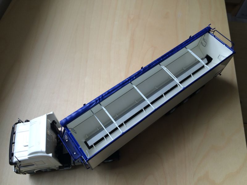 Als neueste Errungenschaft gab es bei mir einen "van der peet" Bandwagen in 1:50 von Tekno. Da die Kupplungssysteme von Tekno und WSI nicht kompatibel sind kann ich ihn leider nicht vorbildsgemäß hinter meine DAF hängen. Aber am Scania macht er sich auch ganz gut :p
