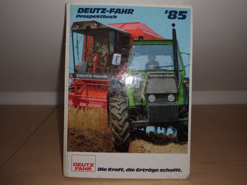 Den Deutz habe ich erstmals im Sommer 1990 gesehen. Da stand der erste Familienbesuch bei der Westverwandschaft am Niederreihn, in Xanten an. Und statt ins Freibad oder zum Einkaufen wollte ich, zur Verwunderung der Onkel und Tanten, nur zu möglichst vielen Landmaschinenhändlern gefahren werden. Von diesem Besuch in Xanten stammen alle meine MB trac Prospekte. Und plötzlich erinnerte sich ein Onkel auch daran, dass er mal gemeinsam mit einem Schlosser gelernt hatte, der nun sein Geld als Meister bei der traditionsreichen Deutz Vertretung "Große Holtforth" verdient. Und dort gab es dann neben vielen anderen Prospekten auch einen kleinen Schatz, dass Deutz Prospekte Buch 1985. Darin finden sich sogar noch gezogenen, rote "Fahr" Mähdrescher und natürlich auch der Vorgänger des Schuco Deutz, der DX 8.30.