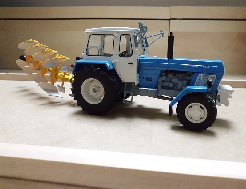 So, dann will ich auch mal wieder. In der letzten Woche gab es den DX, den Huard Pflug und die Nodet Drille samt Kuhn Kreiselegge. Der Deutz ist bislang mein qualitativ bestes Weise Modell. Kein Lackfehler, es wackelt nichts, alles passt, und nicht ein Fett- oder Fingerabdruck. Der ist perfekt. Wäre super wenn das bei Weise so bleibt. Am ZT habe ich mir bei der Gelegenheit mal die vorderen Kotflügel vorgenommen. Der Abstand zum Rad hat mich schon lange gestört. Eigentlich müssten auch die Lampenträger noch weiter nach vorn. Aber als ich einen ab hatte konnte ich sehen, dass die in einem Loch im Rahmen verklebt sind. Das hätte ich dann zuspachteln. schleifen und lackieren müssen. Dazu fehlt mir momentan die Zeit. Und natürlich auch ein Pflichtkauf, der 323 in 1:87 von Busch :p.