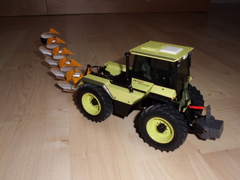 So, dann will ich auch mal wieder. In der letzten Woche gab es den DX, den Huard Pflug und die Nodet Drille samt Kuhn Kreiselegge. Der Deutz ist bislang mein qualitativ bestes Weise Modell. Kein Lackfehler, es wackelt nichts, alles passt, und nicht ein Fett- oder Fingerabdruck. Der ist perfekt. Wäre super wenn das bei Weise so bleibt. Am ZT habe ich mir bei der Gelegenheit mal die vorderen Kotflügel vorgenommen. Der Abstand zum Rad hat mich schon lange gestört. Eigentlich müssten auch die Lampenträger noch weiter nach vorn. Aber als ich einen ab hatte konnte ich sehen, dass die in einem Loch im Rahmen verklebt sind. Das hätte ich dann zuspachteln. schleifen und lackieren müssen. Dazu fehlt mir momentan die Zeit. Und natürlich auch ein Pflichtkauf, der 323 in 1:87 von Busch :p.