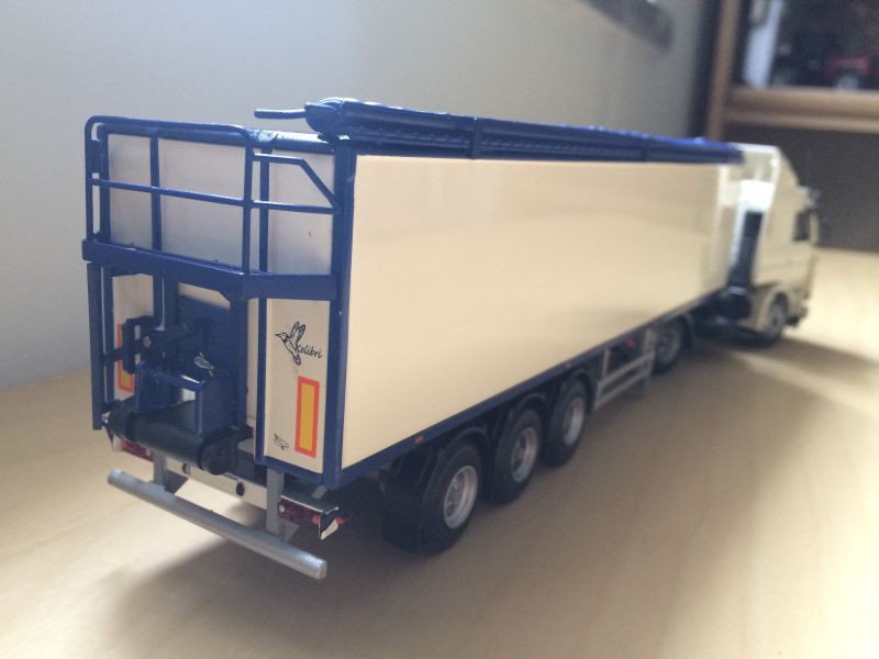 Als neueste Errungenschaft gab es bei mir einen "van der peet" Bandwagen in 1:50 von Tekno. Da die Kupplungssysteme von Tekno und WSI nicht kompatibel sind kann ich ihn leider nicht vorbildsgemäß hinter meine DAF hängen. Aber am Scania macht er sich auch ganz gut :p