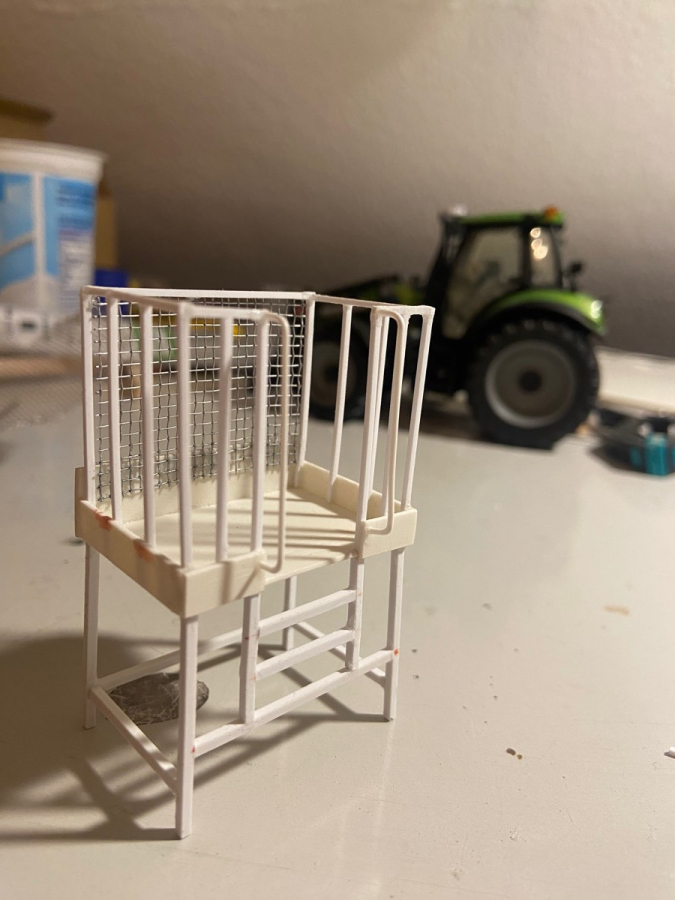 Das Projekt hatte ich glaube ich noch gar nicht vorgestellt. Ich habe mal einen Agrostar mit Frontlader gekauft, da hat mir die Befestigung aber nicht zu gesagt. Also hab ich mal alle unnötigen Teile entfernt und den Frontlader am Koppelturm neu lackiert. Ebenso habe ich die Hubhöhe deutlich vergrößert