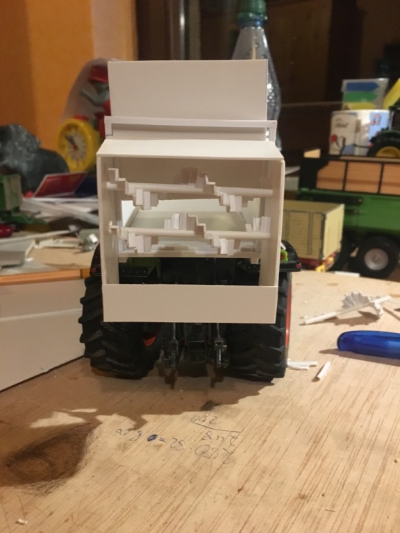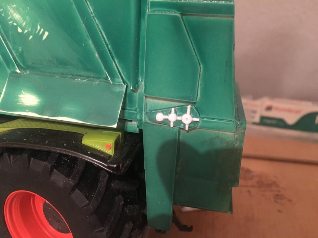 Nachdem ich auf Bildern aus Zwolle einen Saddle Trac mit Tebbe gesehen habe, wurde ich dran erinnert, dass auf meinem Basteltisch ja noch was liegt. Also hab ich mich mal wieder an den Streuer gemacht. Unter anderem habe ich die Stirnwand fertig gemacht. Das Gitter passt nicht so ganz zum Original, aber besser bekomme ich es von Hand nicht hin.