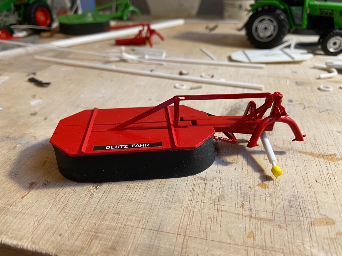 Das Projekt hatte ich glaube ich noch gar nicht vorgestellt. Ich habe mal einen Agrostar mit Frontlader gekauft, da hat mir die Befestigung aber nicht zu gesagt. Also hab ich mal alle unnötigen Teile entfernt und den Frontlader am Koppelturm neu lackiert. Ebenso habe ich die Hubhöhe deutlich vergrößert