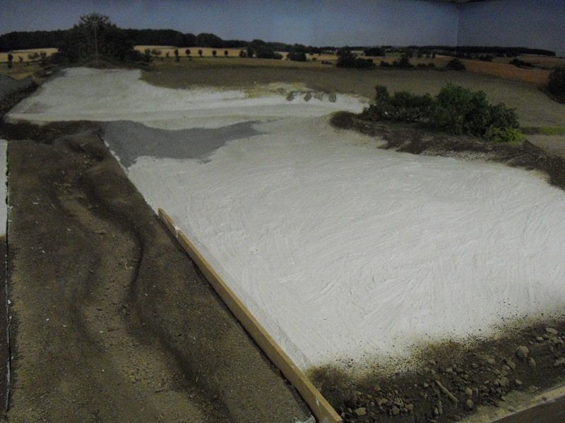Dieses Wochenende hat mein Vater mit dem Bachlauf angefangen und Diesen in die Landschaft eingepasst und die restlichen Flächen gespachtelt.