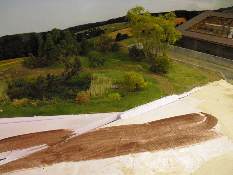 Mario das mit der Erde mach ich doch selbstverständlich noch das ist hier erst die erste schicht Erde die ich in ein Leim-Farb-Gibsgemisch gestreut habe und erstmal trocknen muß.Deswegen sprach ich ja auch von Baubeginn und nicht fertigem DIO;)