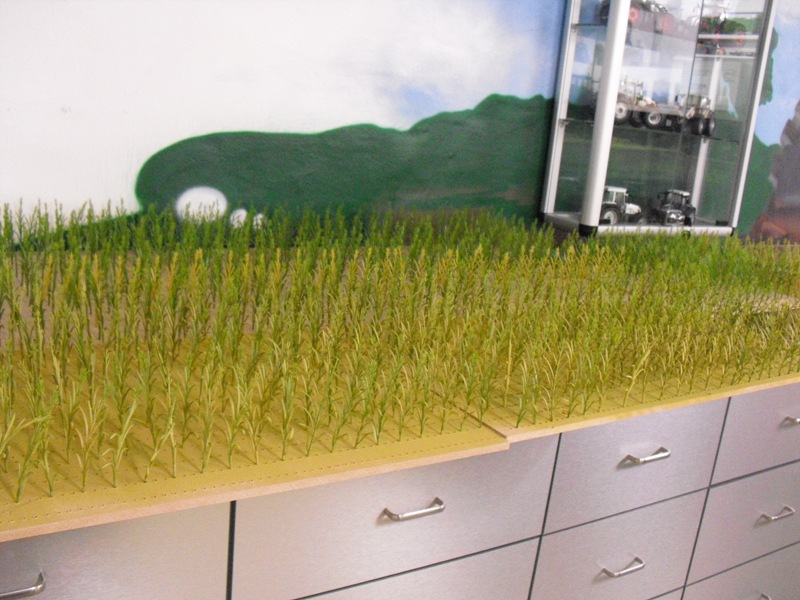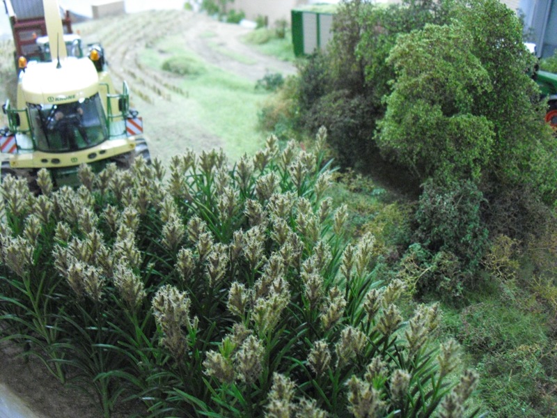 gestern und heute ging es mit dem Umbau des Maisdiorama weiter. Da ein Teil des Diorama transportabel sein soll ,wurde dieser aus der eigentlichen Platte raus getrennt und hat einen Holzrahmen bekommen. Die juweela Maispflanzen wurden zum Überarbeiten eingesteckt und haben einen neuen Anstrich bekommen.Ein paar Sträucher wurden gepflanzt und erste Stoppeln und Maispflanzen haben auch schon ihren Platz gefunden.