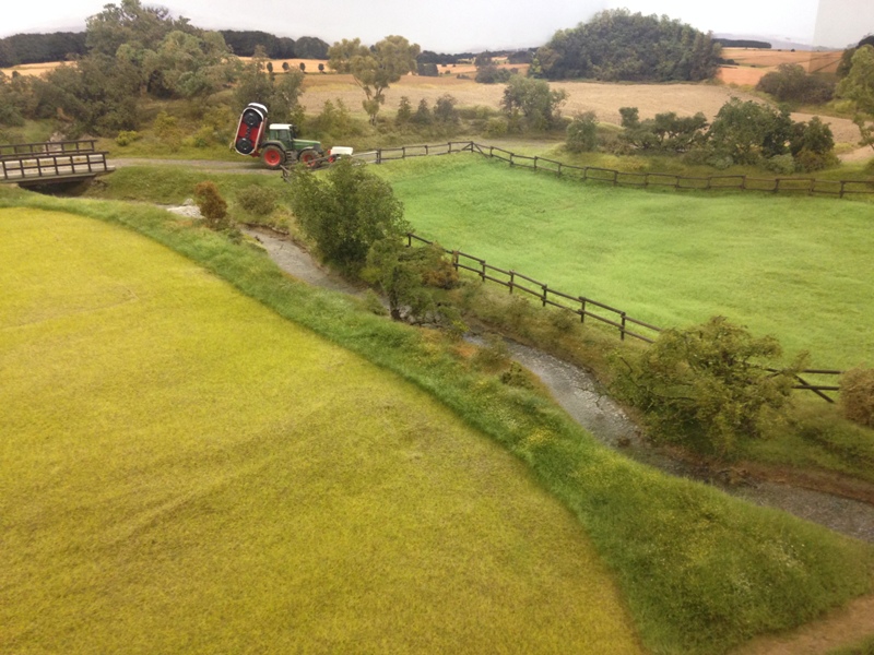 hier nochmal paar aktuelle Bilder von unseren Baufortschritten der letzten Wochen.Die Ecken des Rückwandfotos wurden gerundet & ausgeschmückt bzw begrünt,der Himmel wurde erneut gestrichen ,die alte Wiese hat einen Zaun bekommen und auf der anderen Seite des Bachlauf wurde mit einer weiteren Wiese angefangen.