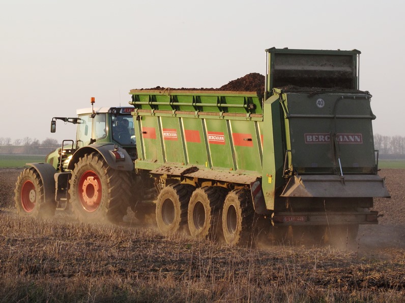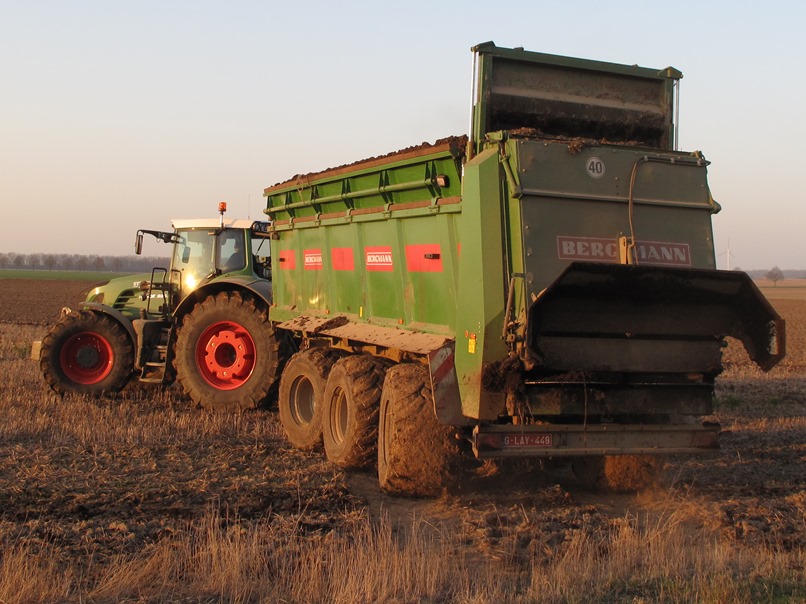 Danke für das abermals nette Feedback. Hier mal etwas größer und moderner: Ein belgischer Lohnunternehmer beim Miststreuen kurz vor Sonnenuntergang in der Nähe von Jülich. Im Hintergrund fuhr noch ein "Gülle-Gespann" des gleichen Unternehmens.