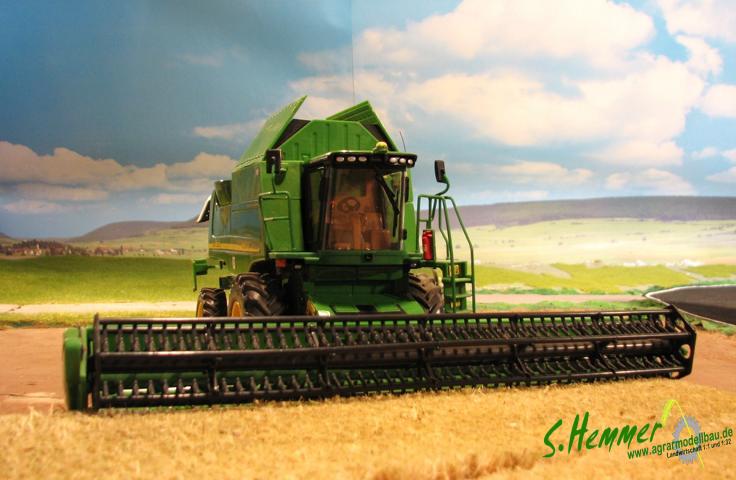 Dreschertechnisch habe ich einen 9880i umgebaut auf passende Spurweite (Eigenbau Pendelachse hinten) mit Biso Schneidwerkswagen