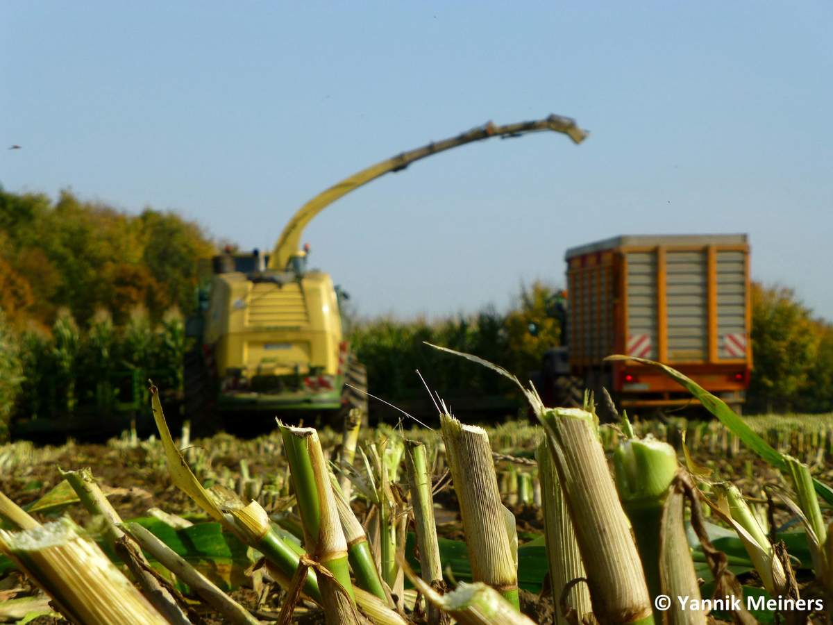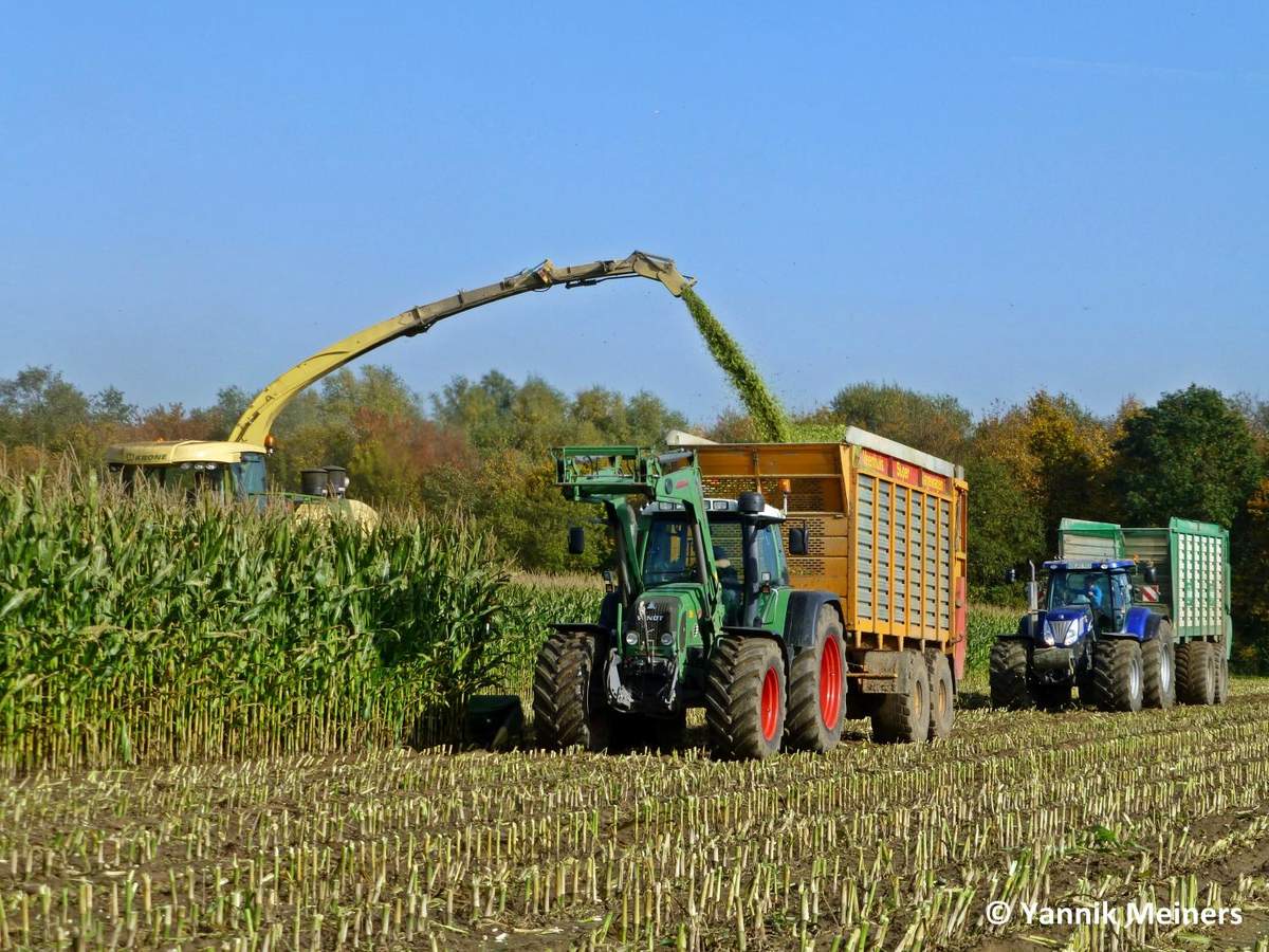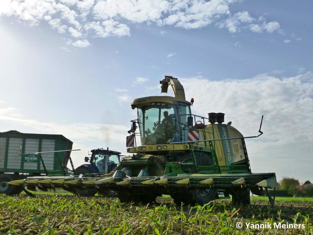 Gestern hab ich auf dem Betrieb eines Freundes mit unserem Schlepper angefahren (die Miete liegt direkt an dem Feld wo gehäckselt wurde) kurz vor Schluss fing die 2te Häckselkette des Lohnunternehemens an auf einem Feld nebenan zu häckseln, für die Fotos hat dann der Häcksler der Ersten Häckselkette auf dem Feld ein paar Bahnen mitgehäckelt;)
