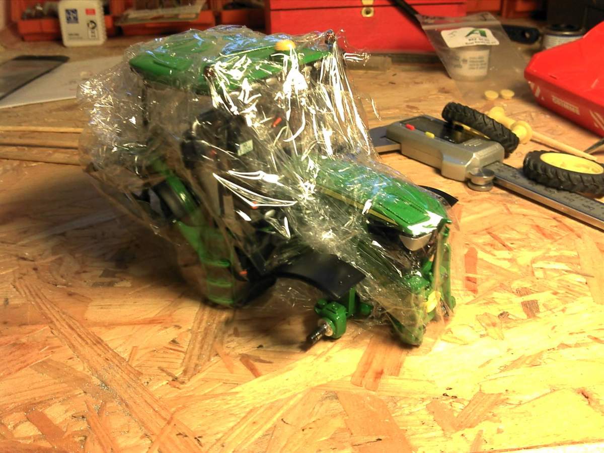 Da ich ein bissel Angst vor meinen eigenen Fräs-Künsten hatte, habe ich kurzerhand das Modell in Frischhaltefolie eingewickelt.