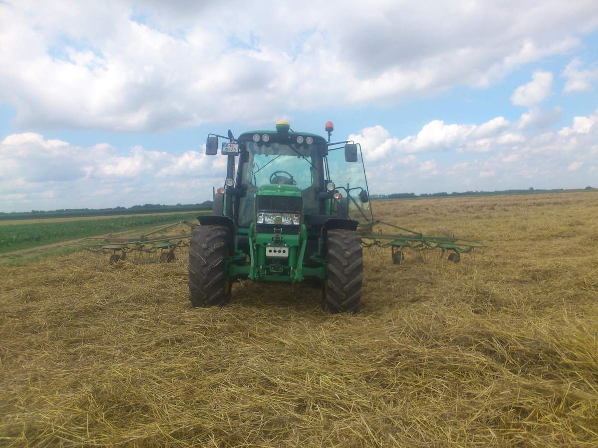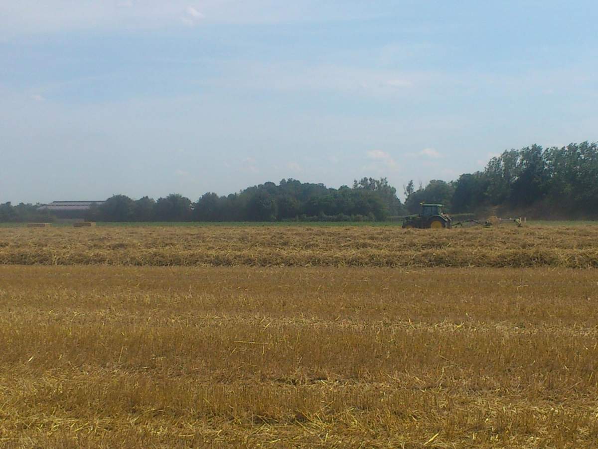 Da der Betrieb ca. 600 Bullen auf Tretmist hält werden dafür schonmal einige Ballen Stroh benötigt, zudem ist in der Futterration auch immer Stroh enthalten. Ein weiterer Teil des Strohs wird wieder weiterverkauft, hauptsächlich an Pferdehöfe in größerem Umkreis. Ansonsten hat der Betrieb noch etwa 45ha Weizen, 25ha Zuckerrüben und 50ha Silomais sowie 25ha Grünland. Der Maschinenpark ist etwas groß ausgelegt aber in der Ernte macht sich das bezahlt;)