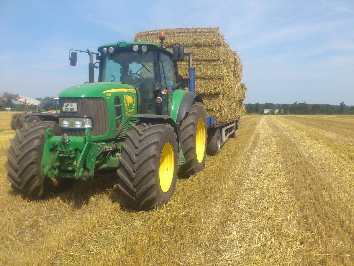 Da der Betrieb ca. 600 Bullen auf Tretmist hält werden dafür schonmal einige Ballen Stroh benötigt, zudem ist in der Futterration auch immer Stroh enthalten. Ein weiterer Teil des Strohs wird wieder weiterverkauft, hauptsächlich an Pferdehöfe in größerem Umkreis. Ansonsten hat der Betrieb noch etwa 45ha Weizen, 25ha Zuckerrüben und 50ha Silomais sowie 25ha Grünland. Der Maschinenpark ist etwas groß ausgelegt aber in der Ernte macht sich das bezahlt;)
