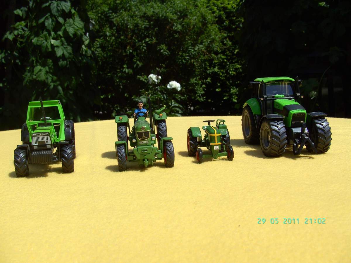 D: Links Deutz DX 6.31 Turbo, Deutz 9005, 15er Deutz von Tyro Toys (als Modell viel zu teuer), Agrotron 210.