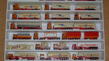 das ist Sammeln aus vielen Jahren - eigentlich überwiegend einzelner Kauf, dann aber auch Börsen mit Plastiktüten voll und bei lieben Händlern, die mir das aktuelle Programm nach meinen Wünschen zurückhalten. So sammle ich überwiegend aus Scandinavien und hier dann Kühlzüge - 33 Jahre im Schweineschlacht- und Zerlegeunternehmen gearbeitet u.a. Verwaltungsleiter und hier auch als Logistikleiter - das prägt und werde ich nicht mehr los. Und da ich auch für den Lebendvieheinkauf verantwortlich war, bin ich sehr viel auf die Bauernhöfe gekommen, um das Schweinematerial zu beguachten. Dabei sind mir dann die Trecker und die riesigen Geräte und Anhänger aufgefallen und haben sich dann im Kopf als Wunschhobby festgesetzt. So - das war schon fast alles! -