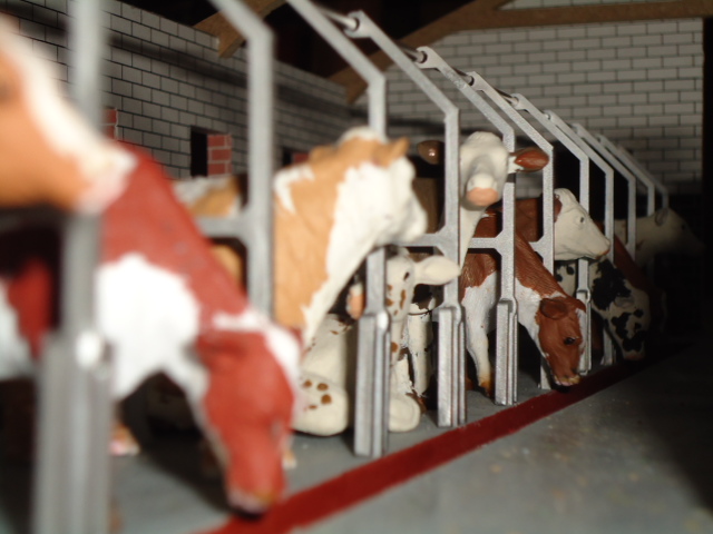 habe es mal meinen Anbindestall weitergebaut. Ich habe endlich mal die Anbindestände eingebaut und mal einige Kühe eingestellt. Ich hoffe da nächste Woche die Moosgummiplatten kommen!!! Dann kann ich die Liegematten in den Ständen anbauen. Außerdem tüfteln wir noch an der Anbindung herum.