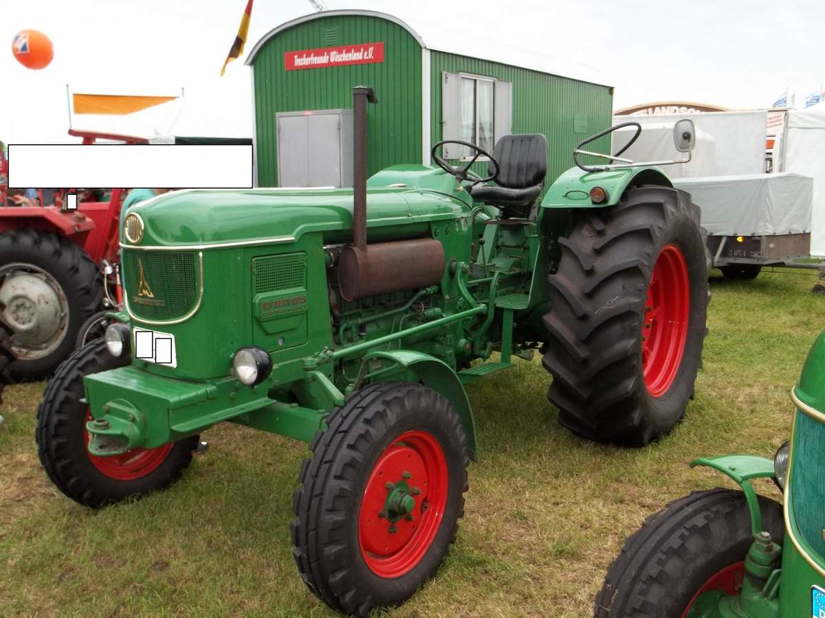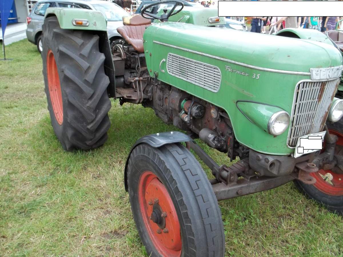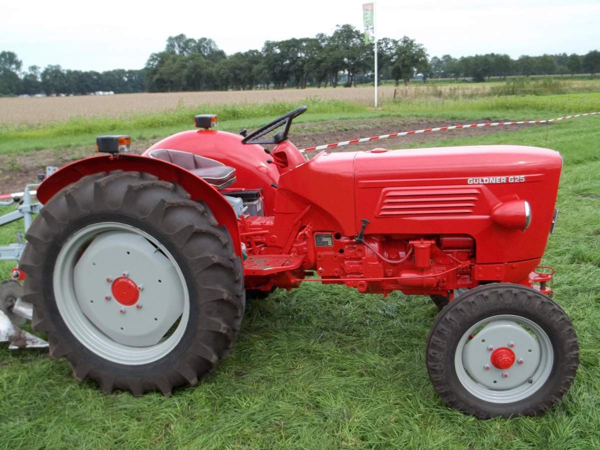 Es handelt sich hier um einen Güldner mit 20 PS. Der Güldener stammt aus derselben Baureihe als den wir früher einmal hatten. Es war so ungefähr eine wiedersehen obwohl wir einen roten Güldner mit 25 PS und Hydraulik hatten. Ich denke das unser wohl neuer war da die spätere Güldner Baureihe ja auch rot war. Was es zu dieser Baureihe noch zu sagen gibt ist das es diese Schlepper lediglich mit einer anderen Haube genauso von Fahr gegeben hat, denn es war die Europabaureihe die in einer Arbeitsgemeinschaft hergestellt wurden. Die Europa Baureihe umfasste glaube ich vier Modelle angefangen bei einem 15 PS oder 16 PSüber den gezeigten mit 20 PS und eben den 25 PS sowie den stärksten der Baureihe mit 35 PS der glaube ich als einziger einen Mercedes OM Motor hatte. Die anderen hatten einen Original Güldner Motor..