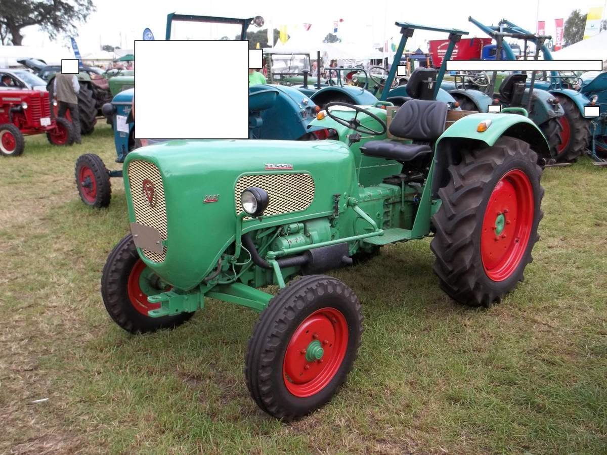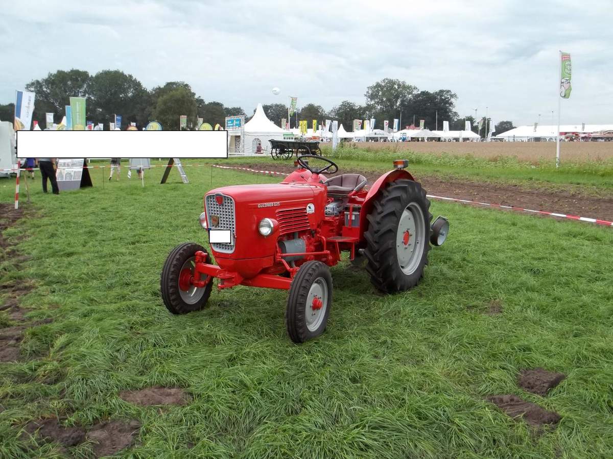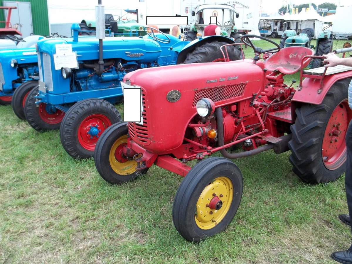 Es handelt sich hier um einen Güldner mit 20 PS. Der Güldener stammt aus derselben Baureihe als den wir früher einmal hatten. Es war so ungefähr eine wiedersehen obwohl wir einen roten Güldner mit 25 PS und Hydraulik hatten. Ich denke das unser wohl neuer war da die spätere Güldner Baureihe ja auch rot war. Was es zu dieser Baureihe noch zu sagen gibt ist das es diese Schlepper lediglich mit einer anderen Haube genauso von Fahr gegeben hat, denn es war die Europabaureihe die in einer Arbeitsgemeinschaft hergestellt wurden. Die Europa Baureihe umfasste glaube ich vier Modelle angefangen bei einem 15 PS oder 16 PSüber den gezeigten mit 20 PS und eben den 25 PS sowie den stärksten der Baureihe mit 35 PS der glaube ich als einziger einen Mercedes OM Motor hatte. Die anderen hatten einen Original Güldner Motor..