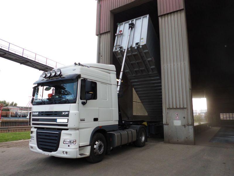 Los ging es am Samstag auf einer fast identischen Zugmaschine. Nur der Auflieger war diesmal ein Kempf, kein Stas. Und dieser hatte keine Lenkachse und nur einen Kornschieber. Ich persönlich fand den Stas wendiger und kompakter, habe mich aber schnell umgewöhnt.