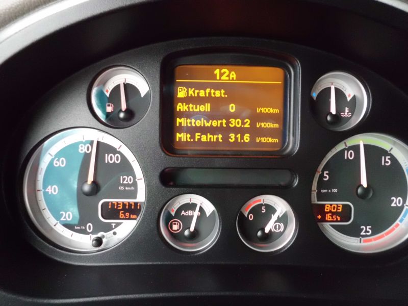 Im Gegensatz zu der Zugmaschine vom letzten Samstag fehlte den beiden gezeigten DAF ein kleines, aber bedeutendes Bauteil. Sie verfügten noch nicht über die neueste Variante des digitalen Fahrtenschreibers mit der "ein Minuten Funktion". Diese bewirkt sinngemäß, dass nur die Tätigkeitsart aufgezeichnet wird die länger als 29 Sekunden ausgeübt wird. Wenn das Gerät also auf "Ruhe" steht, kann ich 29 Sekunden lang fahren (zum Beispiel in der Warteschlange vorziehen) ohne dass die aufgezeichnete Lenkzeitunterbrechung gestört wird. Und das theoretisch unbegrenzt oft. Im Gegensatz zum reinen Fernverkehr hat solch ein Gerät bei dieser Art von Transporten unschätzbare Vorteile.