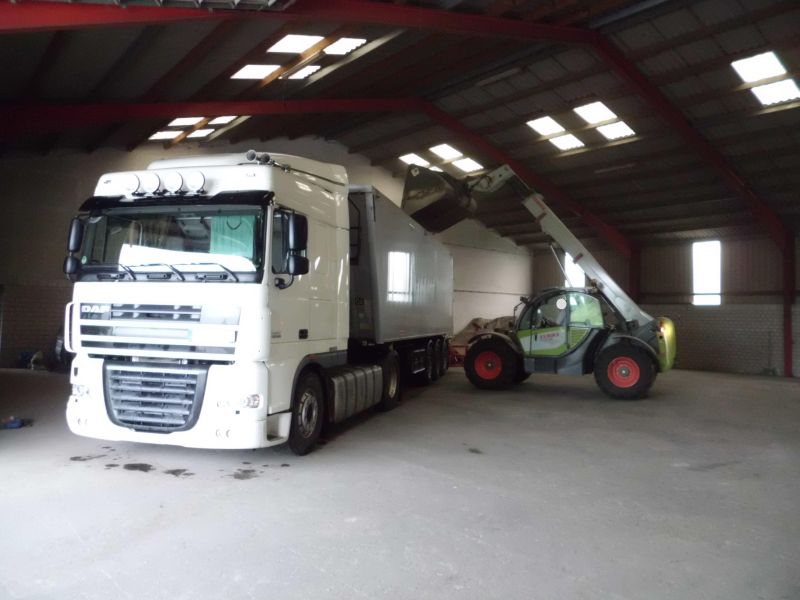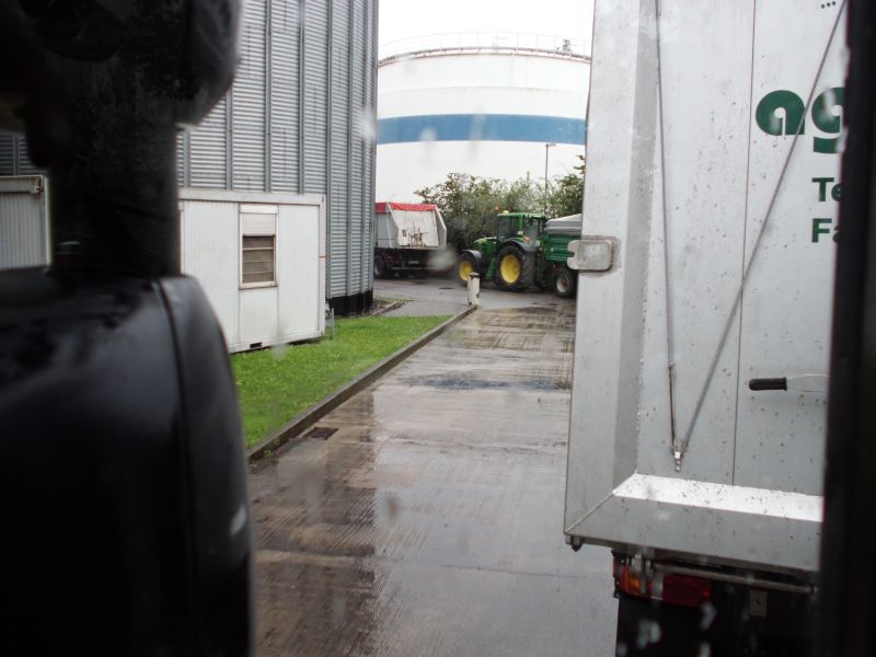 Nach dem ersten Kippen begann es so stark zu regnen, dass an ein Laden im Freien gar nicht zu denken war. Also doch rückwärts schräg in eine dunkle Halle schieben. Unbeobachtet und mit Einweiser ging es jedoch erstaunlich schnell ;). Und da natürlich sämtliche Landwirte das schlechte Wetter nutzen, um ihre Hallen leer zu fahren hieß es dann im zweiten Rundlauf warten, warten, warten..........................................................