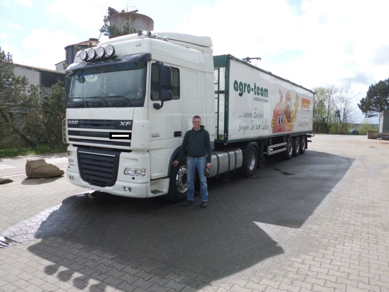 Das ist der Trucker, hat sich wirklich gut gehalten und hört nach eigenen Angaben erst auf, wenn er nicht mehr die Stufen zum Fahrerhaus hoch kommt. Er hat gerade seinen Führerschein um fünf Jahre verlängert, fährt aushilsweise, außer in der Rübenkampagne. Da zieht er voll mit durch, Respekt !!!