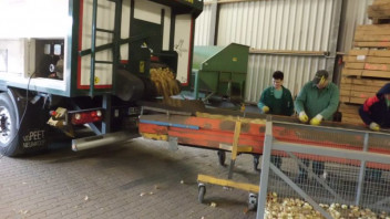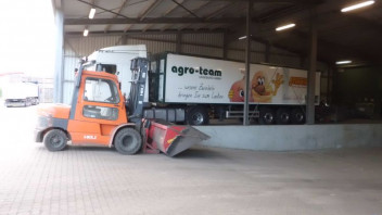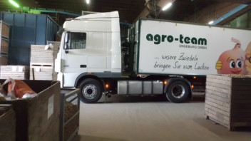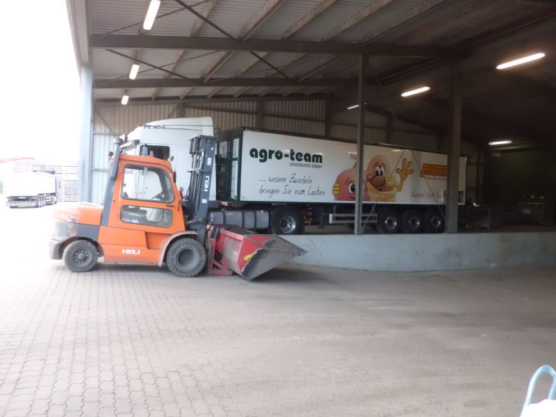 Als Rückladung gab es bei dem gleichen Betrieb Zwiebeln. Diese haben den gestrengen Blicken der Prüfer des Lebensmitteleinzelhandels nicht stand gehalten, und sollten zur abermaligen Sortierung zurück zum Erzeuger in die Magdeburger Börde. Verrückte Welt.................
