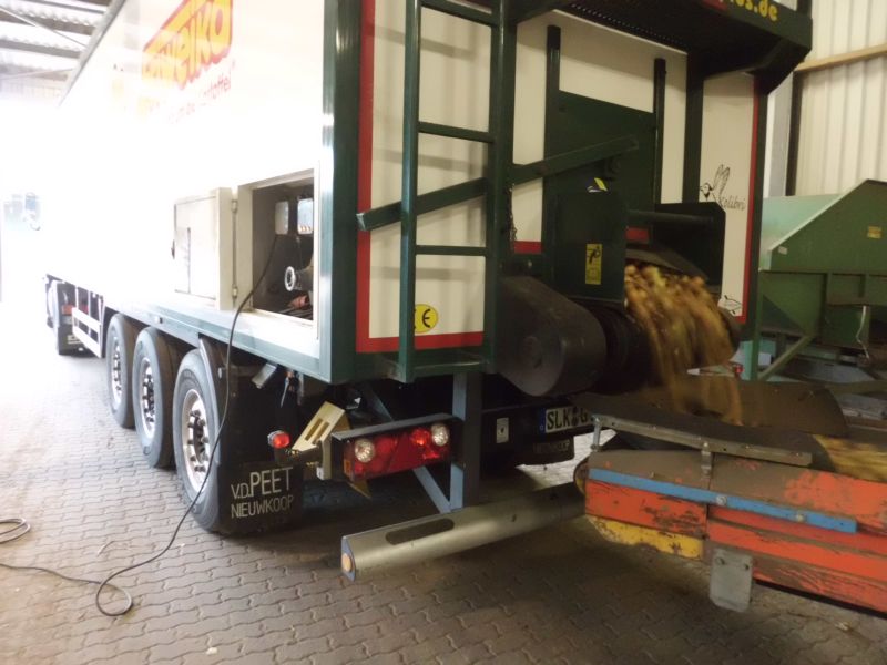 Der Vorteil am Bandwagen ist, dass die Zugmaschine keine Hydraulikanlage, also Tank, Pumpe und Nebenabtrieb benötigt und dadurch leichter sein kann. Und so können auch Spediteure mit Standartzugmaschinen Schüttguttransporte durchführen. Der Nachteil besteht darin, dass an der Abladestelle ein Starkstromanschluss vorhanden sein muss. Beim Durchblättern der Bedienungsanleitung fiel mir auf, dass Getreide nicht erwähnt ist, obwohl die Spedition regelmäßig Getreide, ja sogar Raps problemlos mit den Bandwagen transortiert.