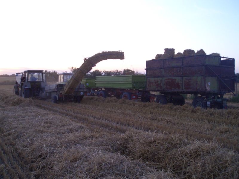Die folgenden Bilder sind aus dem Sommer 2009. Die Maschinen gehören einem guten Freund von mir, der alte Osttechnik sammelt und wieder herrichtet. Einmal im Jahr presst er dann damit kleine, handliche Strohballen für Pferde- und Kaninchenzüchter. Inzwischen hat er noch einen dritten ZT gekauft (man kann ja nie wissen....) und auch die Anzahl meiner Kinder hat sich seit dem verdoppelt ;).
