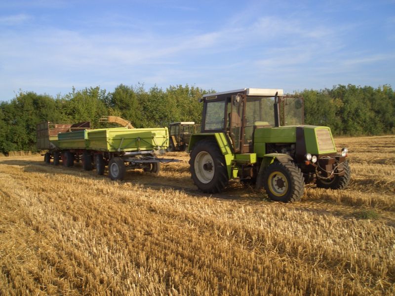 Die folgenden Bilder sind aus dem Sommer 2009. Die Maschinen gehören einem guten Freund von mir, der alte Osttechnik sammelt und wieder herrichtet. Einmal im Jahr presst er dann damit kleine, handliche Strohballen für Pferde- und Kaninchenzüchter. Inzwischen hat er noch einen dritten ZT gekauft (man kann ja nie wissen....) und auch die Anzahl meiner Kinder hat sich seit dem verdoppelt ;).