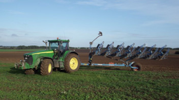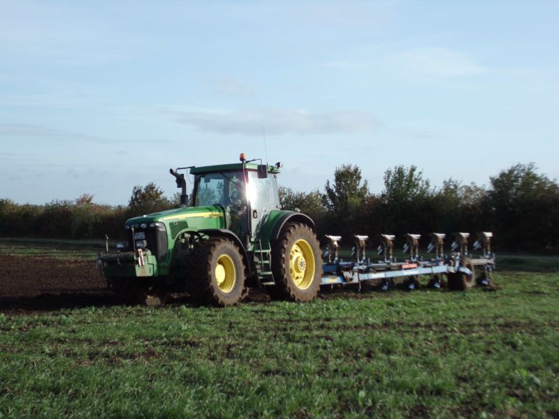 08.10.2011, JD 8220 mit Lemken 7 Schar + Packer in der Gemarkung Welsleben.