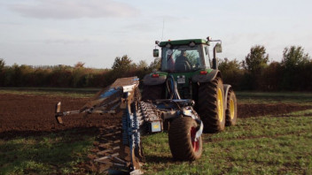 04.11.2011 Belarus mit drei Schar Beetpflug eines Magdeburger Landwirtes mit Hofstelle mitten in der Stadt.