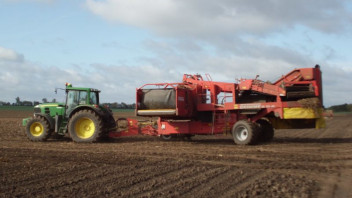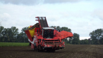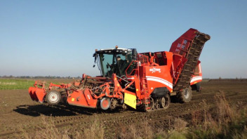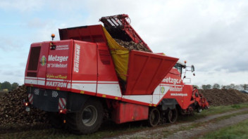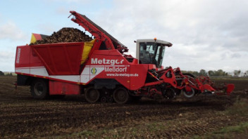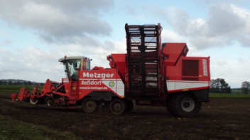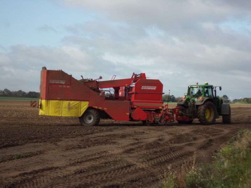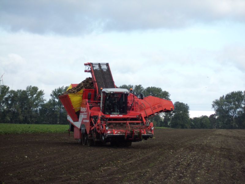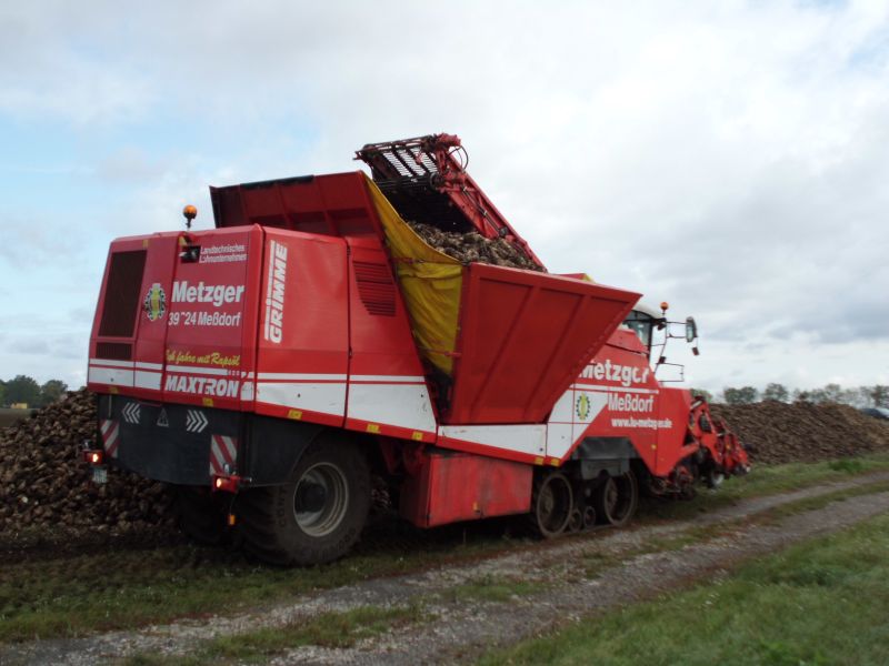 08.10.2011, LU Metzger beim Roden mit Grimme Maxtron in der Gemarkung Langenweddingen. Leider hat sich der Lohner die Wanne gespart was für den Roderfahrer üppig Leerfahrten bedeutet hat .