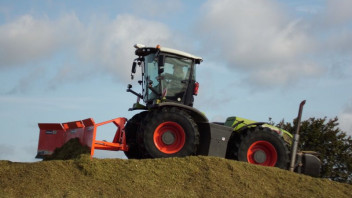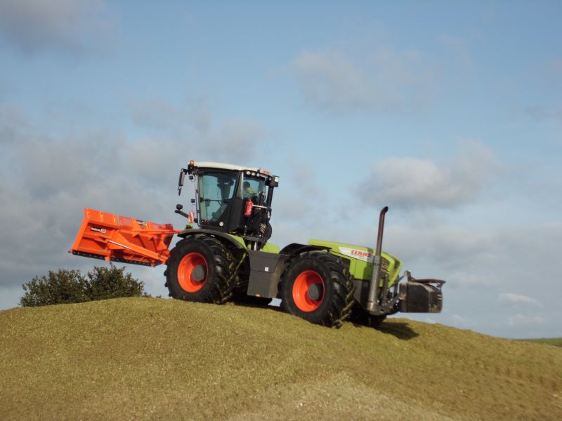 Und gelagert wurde der Mais gleich am Feldrand. Der Xerion ist eine Mietmaschine.