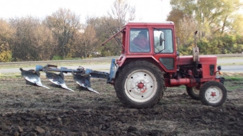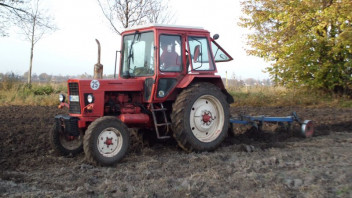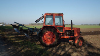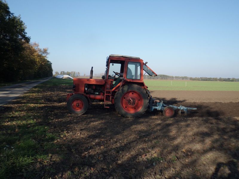 23.10.2011 Belarus mit zwei Schar Beetfpflug eines Nebenerwerbslandwirtes in der Gemarkung Altenweddingen. Der top gepflegte Russe lief vor der Wende in der Hopfenbrigade der LPG Borne und hat grad zweitausend Stunden auf der Uhr. Für 4250,- DM war er aus heutiger Sicht ein echtes Schnäppchen.