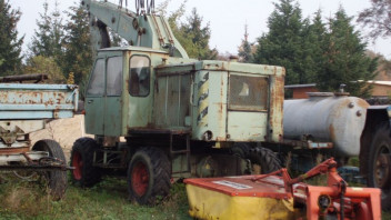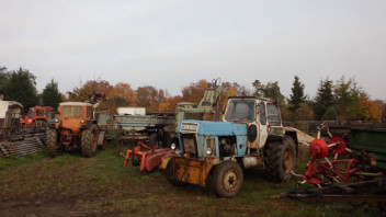Hof eines Magdeburger Nebenerwerbslandwirtes mit Pferdehaltung. Belarus, T 174 Bagger und ZT 300. Der ZT hat bis zur Wende zur Planerfüllung in einem Schönebecker Möbelwerk beigetragen.