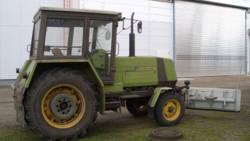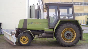 Und hier etwas ganz Besonderes. Einer der letzten ZT 320. Noch nie zugelassen und wenn der Zähler stimmt mit weniger als 100 h auf der Uhr. Er gehört einem Betrieb in meiner Nachbarschaft und verrichtet nur selten ganz leichte "Hausmeisterarbeiten". Er ist fast komplett (Radgewichte, Seitenbleche, Anbauplatte). Es fehlen nur die kleinen Scheiben vorne , rechts bzw. hinten zur Schlauchdurchführung. Vermutlich war er von Anfang an für einen Betrieb gedacht da er kein Hubwerk hat. Momentan ist er leider nicht verkäuflich :(.