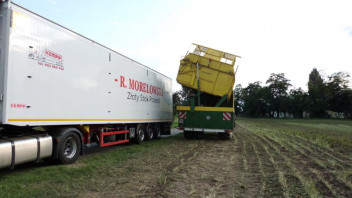Verladen wurde direkt am Feldrand auf einen schmucken polnischen Schubbodenzug.