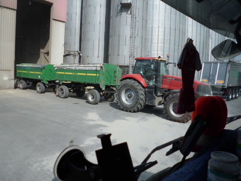 Heute wurde dann auch der Bohnenschlag von den ersten Bildern auf dieser Seite umgebrochen. Eingesetzt wurde dazu ein frisch instand gesetzter K 701 mit einer Amazone Catros. Es ist der Letzte von ehemals drei K 700 dieses Betriebes. Neu sind u.A. das Getriebe und die Decken. Er muss also noch einige Jahre arbeiten damit sich die Investitionen rechnen. Sehenswert, das Parallelfahrsystem neben dem Ventilator und den Armaturen mit kyrillischer Beschriftung :D.